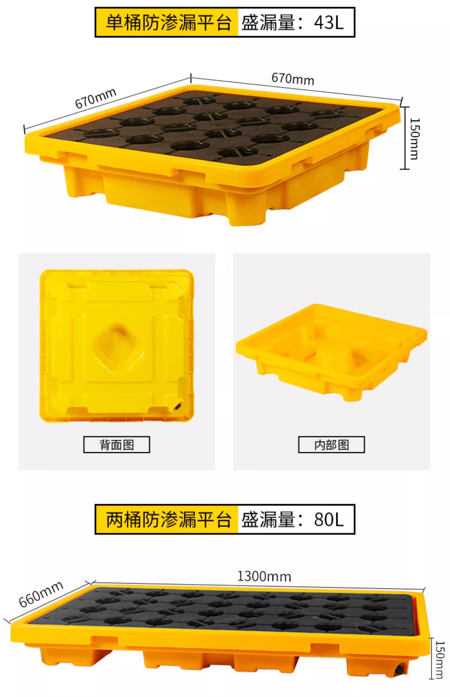 防渗漏托盘两桶装平台【1300*660*150MM】