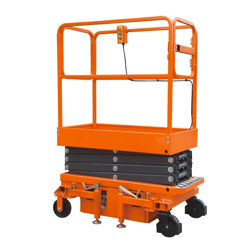 移动式⼩型剪叉式升降平台载重300kg平台最大高度1700mm