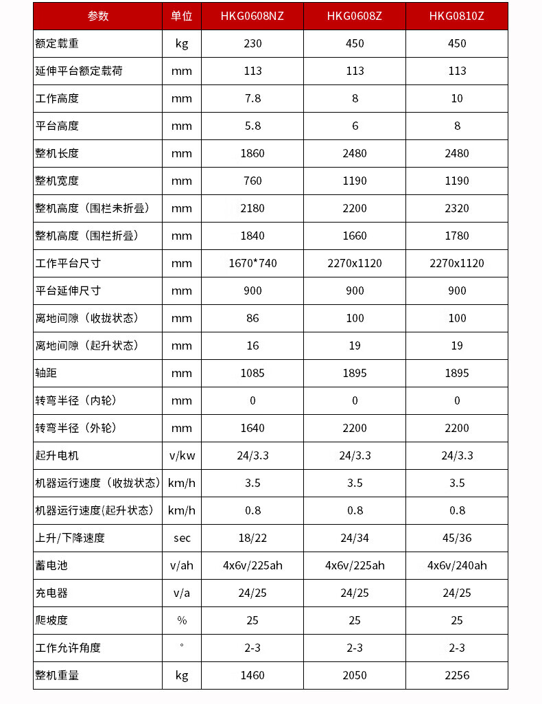 高空作业平台剪叉式载重450公斤升高6米HKG0608Z登高车全电动自行走升降机