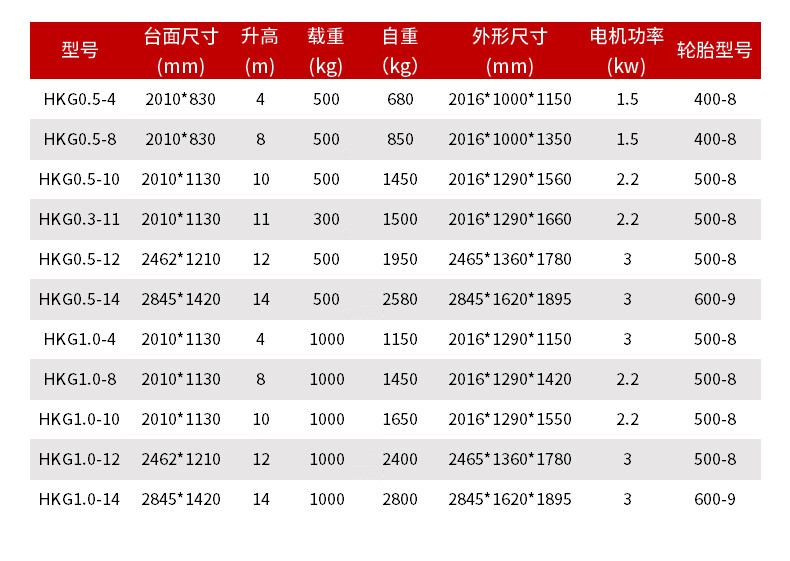 高空作业平台剪叉式载重500KG升高8米HZGKP0.5-8登高车直流款升降机