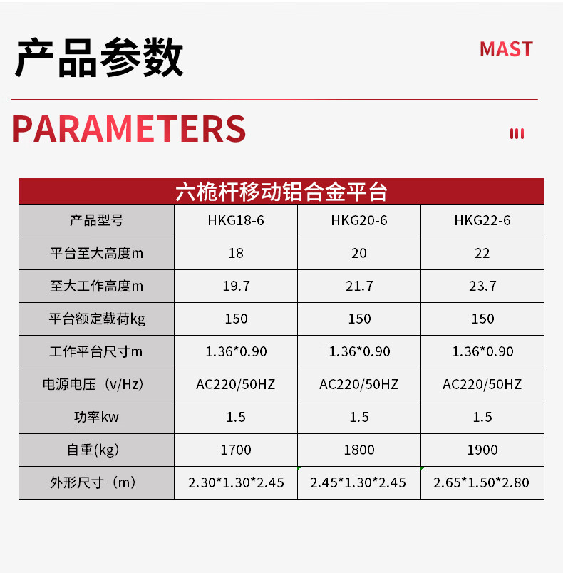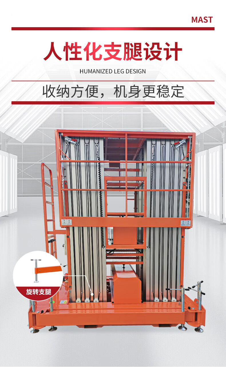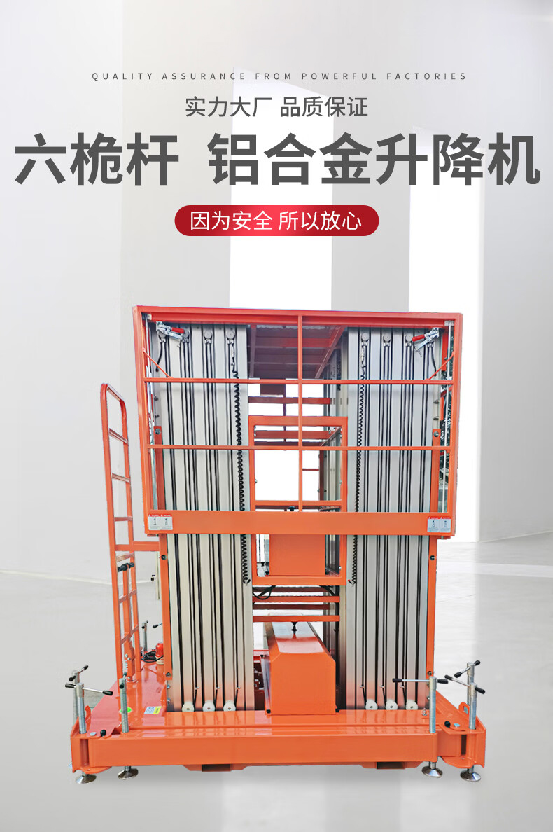 高空作业平台桅杆式载重150KG升高18米HZWG18-6登高车交流款六桅杆升降机