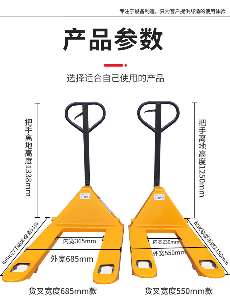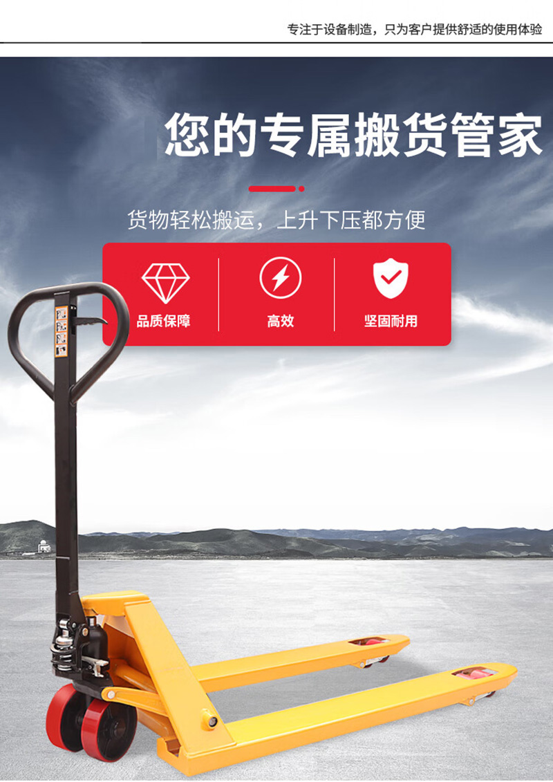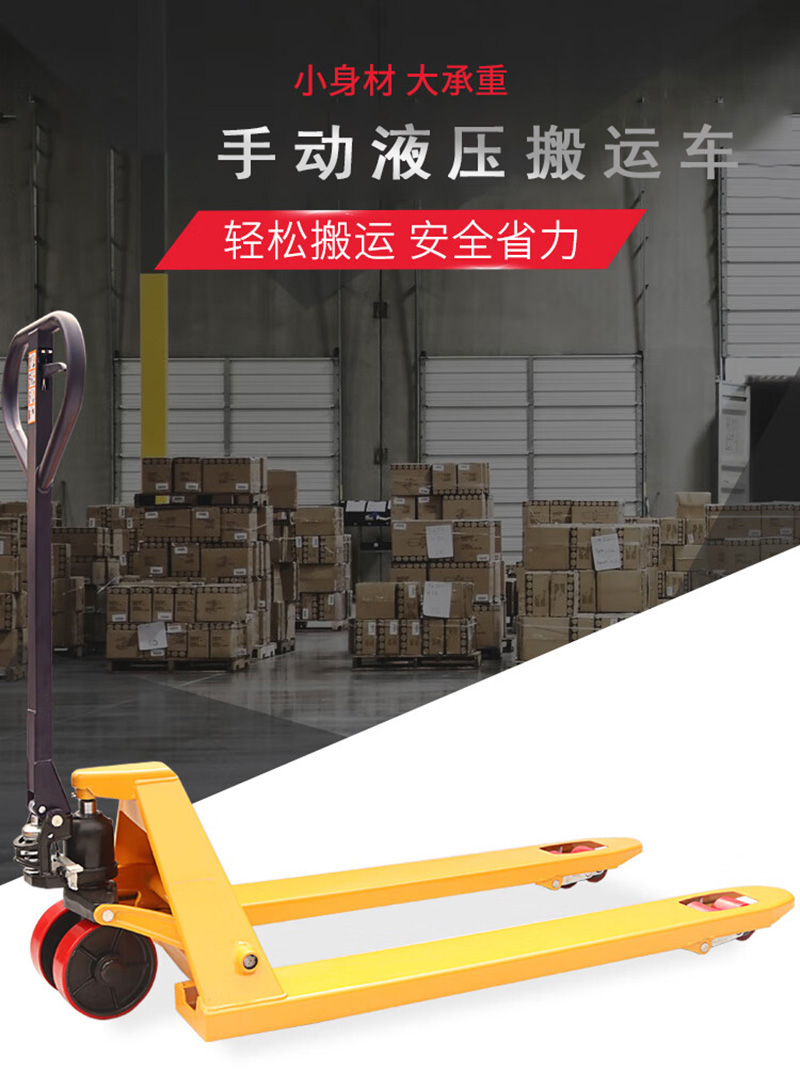 黄色手动液压搬运车5T685x1200铁轮黄色