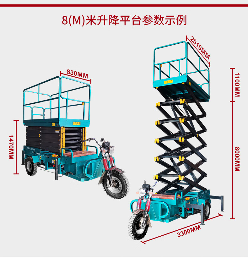 登高车高空作业平台剪叉式三轮车移动液压升降平台电动升降机 直流款 载重500KG升高6.8米