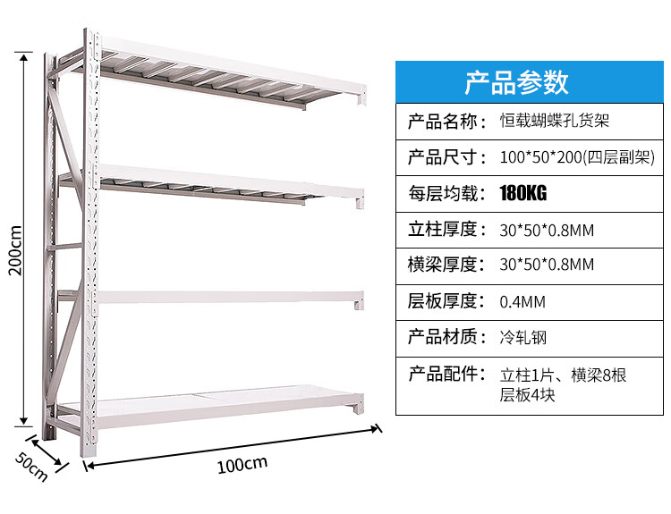 轻型仓储货架服装展示架储物架置物架子白色150*60*200=4层副架可定制