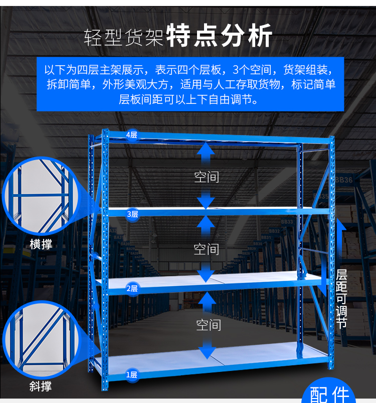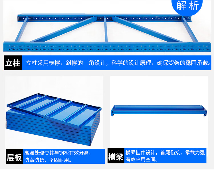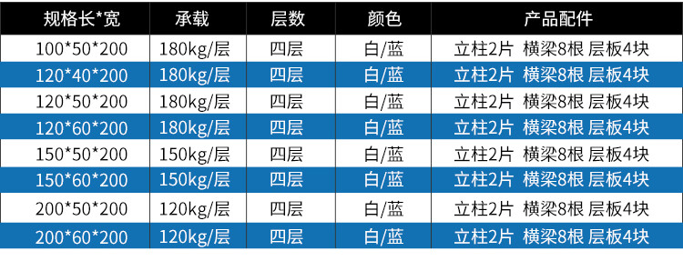 轻型仓储货架服装展示架储物架置物架子蓝色150*50*200=4层主架