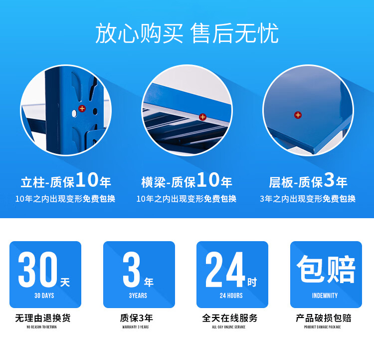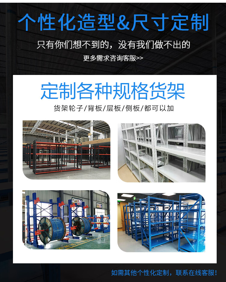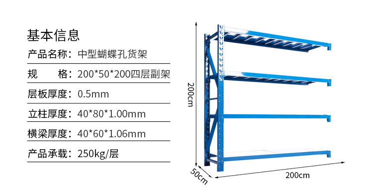 中型仓储货架展示架储物架置物架子承载250kg蓝色120*50*200=4层副架可定制