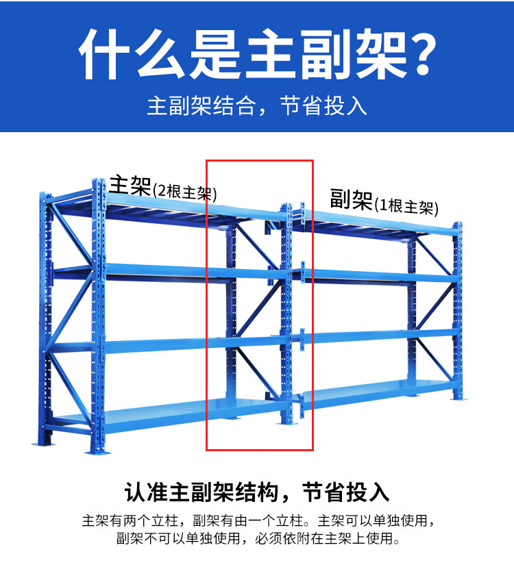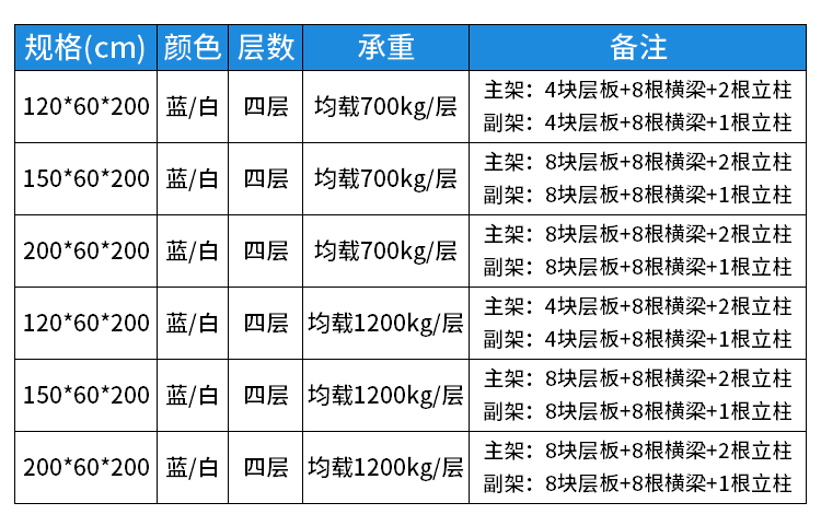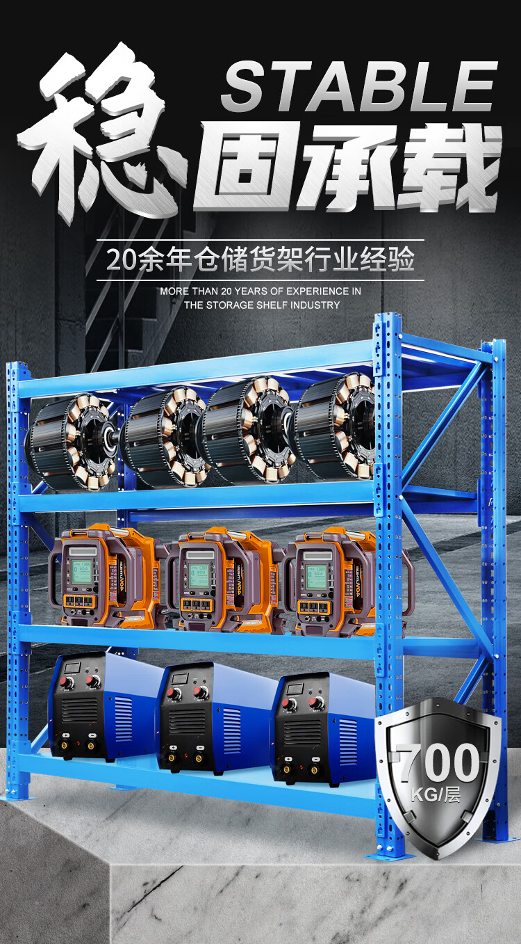 重型仓储货架仓库储物架库房货架展示架储物架子均载700kg/层 蓝色150*60*200cm四层副架