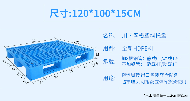 塑料托盘仓库防潮板叉车托盘栈板物流垫仓板 网格川字1200*1000*150+8钢