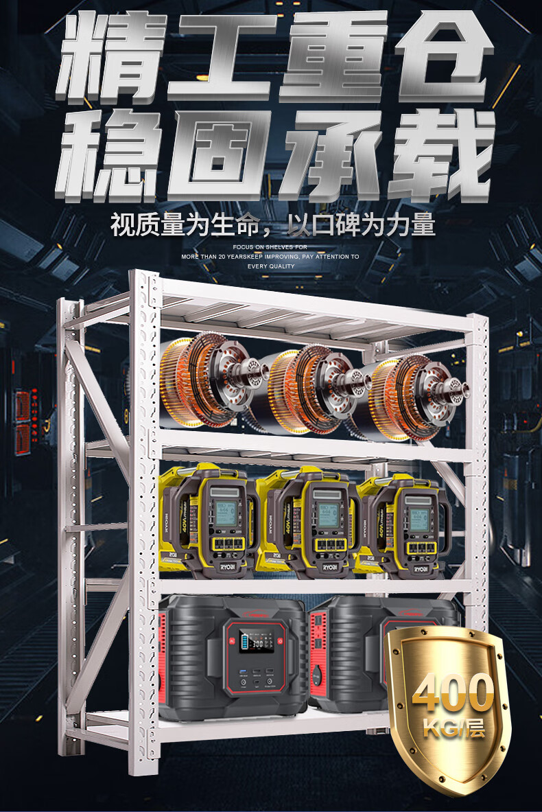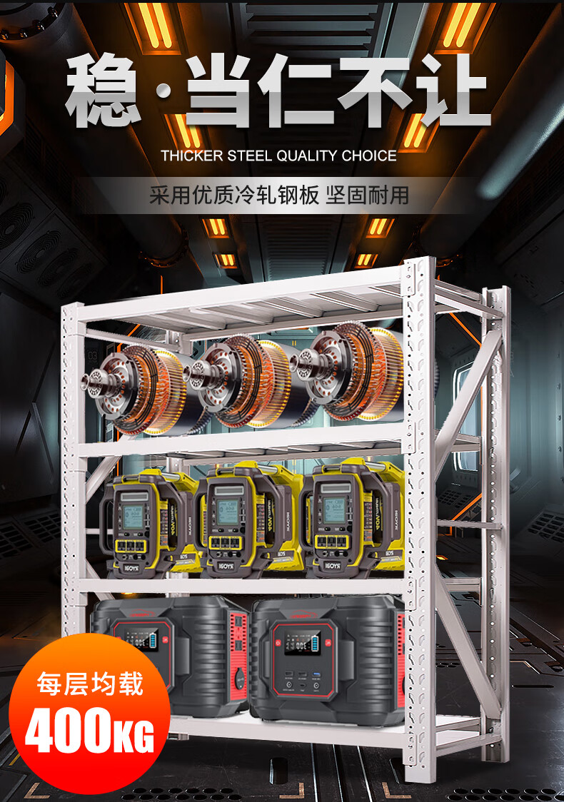 货架仓储置物架库房储物架物品展示架重型钢制货架子车库铁架均载400KG/层白色150*60*200cm四层主架