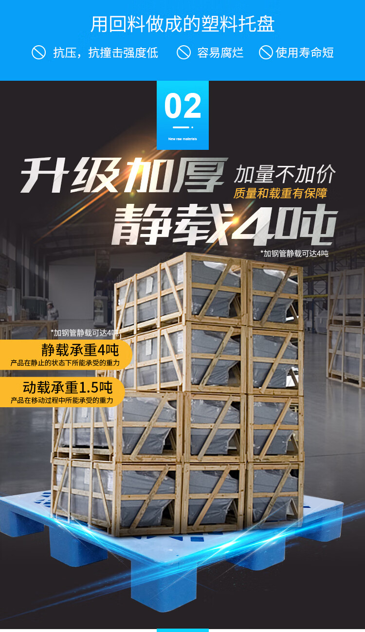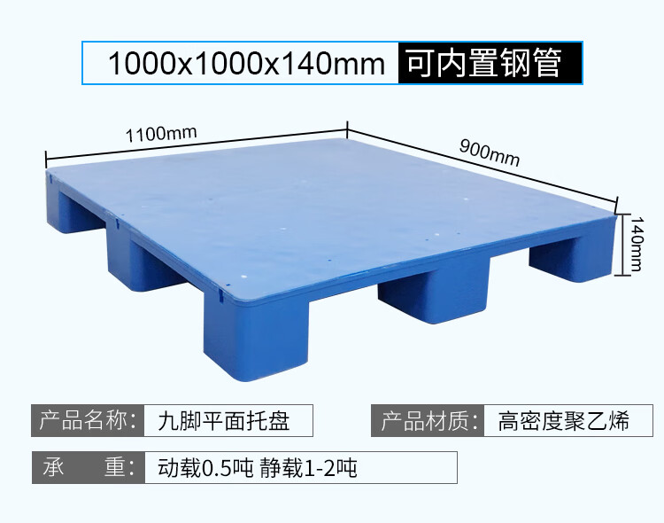 塑料托盘大九脚平板重型叉车托盘物流托盘仓储防潮板运输栈板加钢管新料平面托盘1200*1000*140mm+3钢