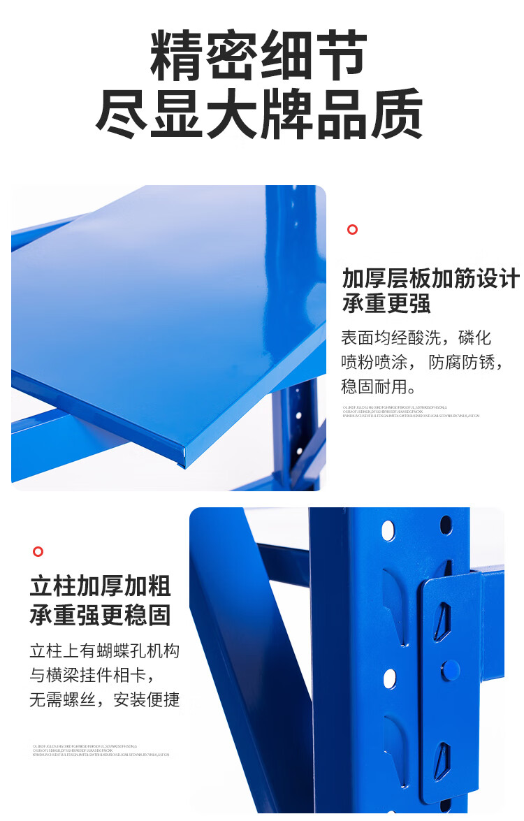 蓝色轻型货架仓储展示置物架 150*40*200cm 四层主架均载150KG/层
