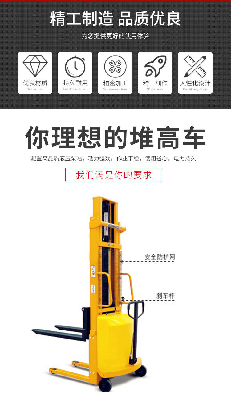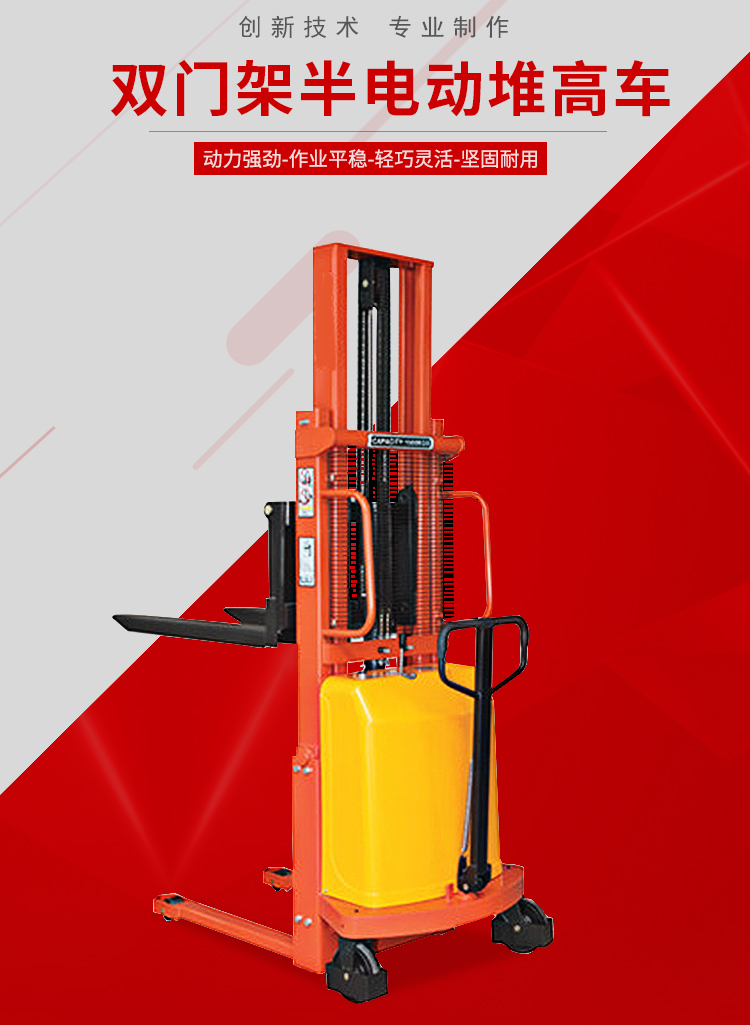 半电动堆高车载重1吨升高3.5米铅酸电池HK10-35B双门架托盘搬运叉车