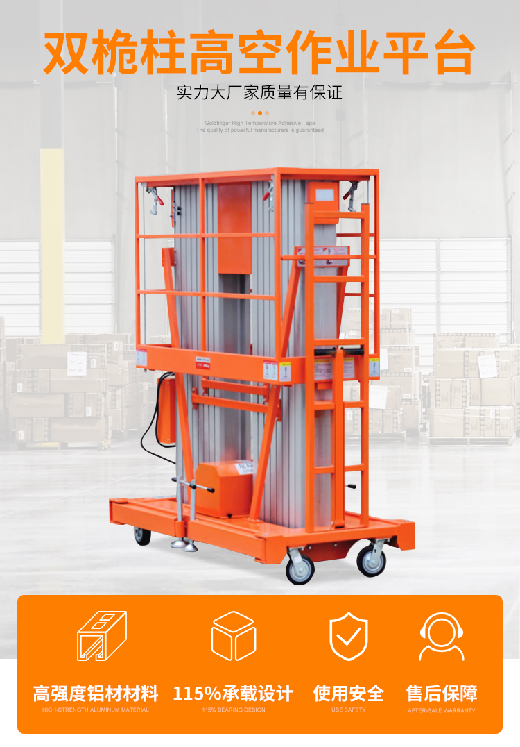 高空作业平台桅杆式载重300KG升高14米HZG14-2双桅杆升降机