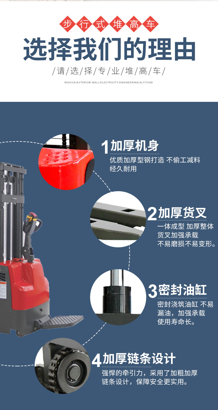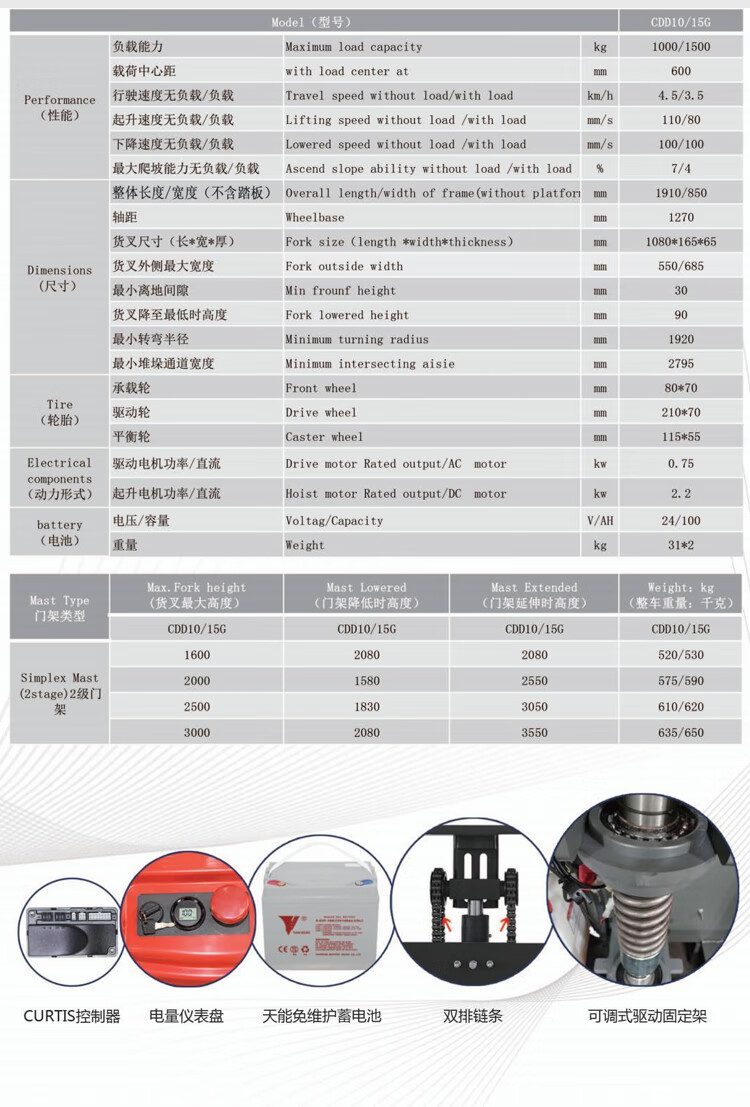 电动堆高车载重1吨升高2.5米铅酸电池24伏100安时CDD1025站驾式托盘搬运叉车