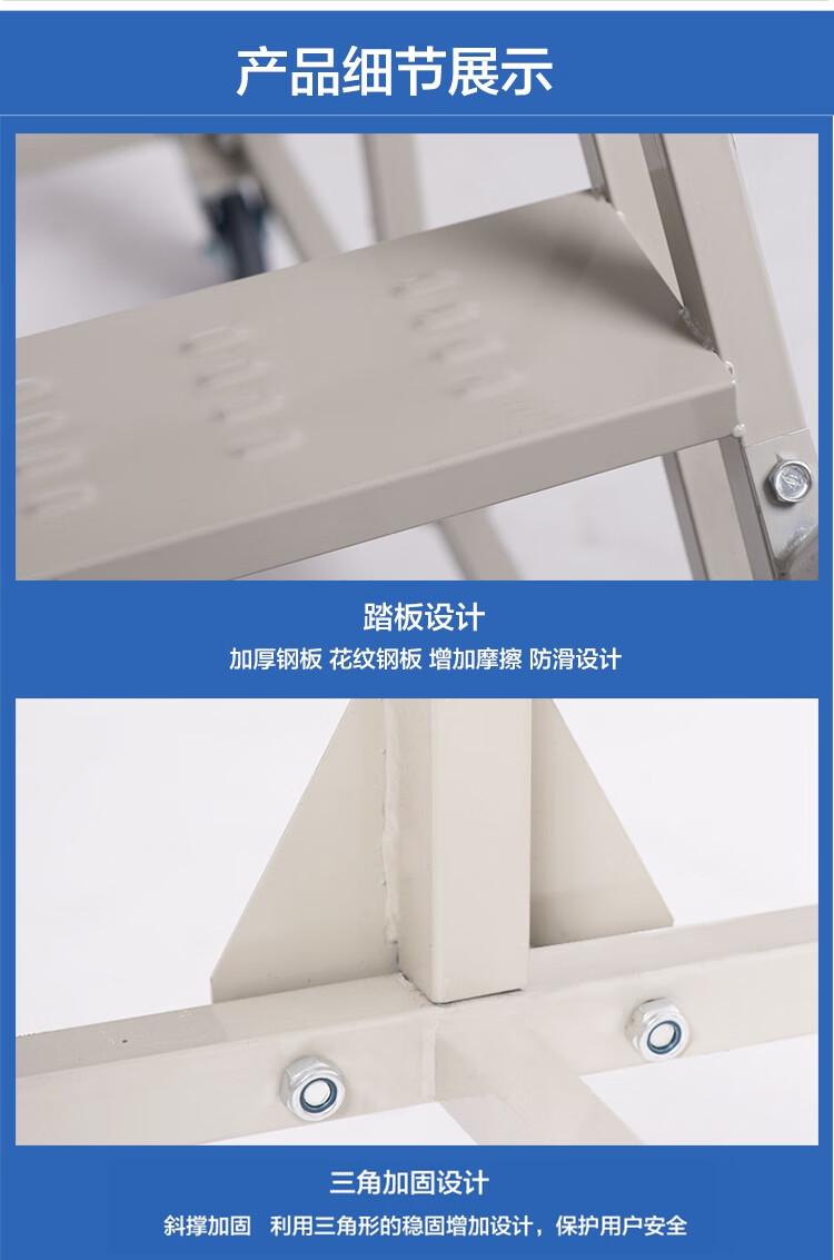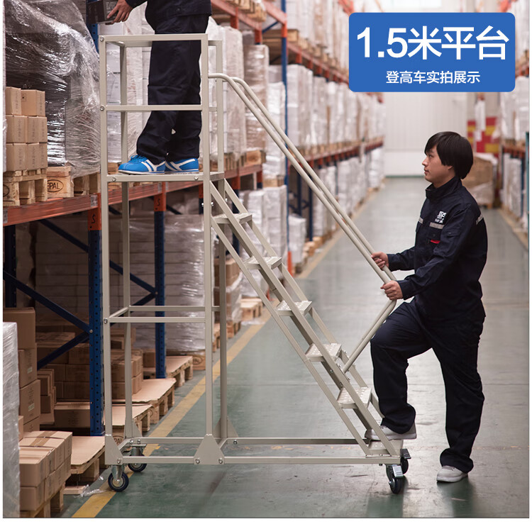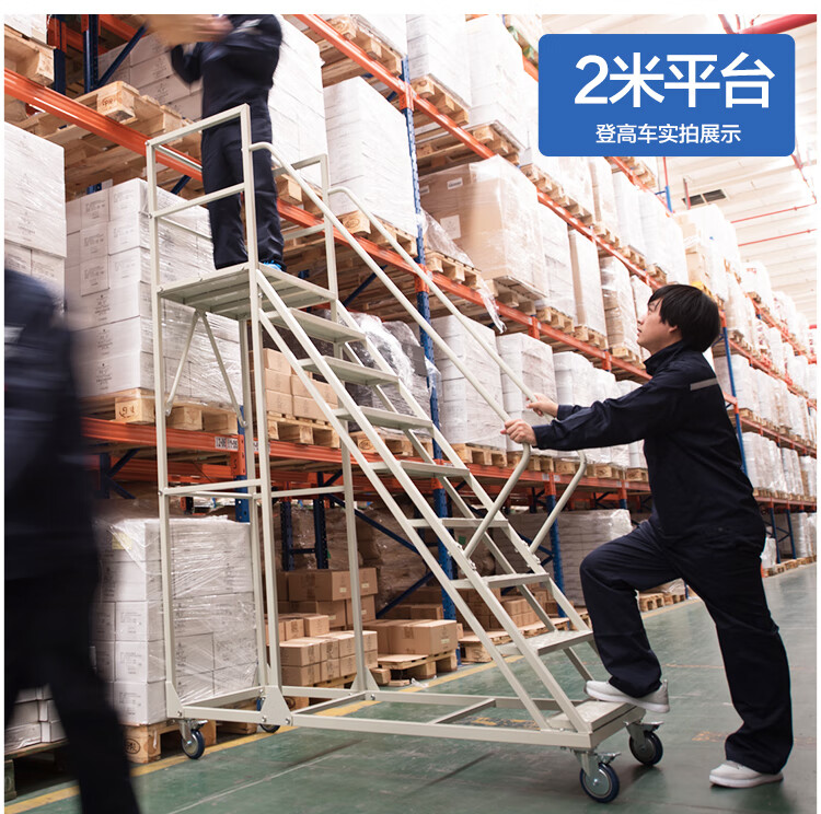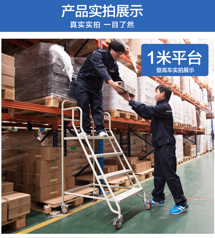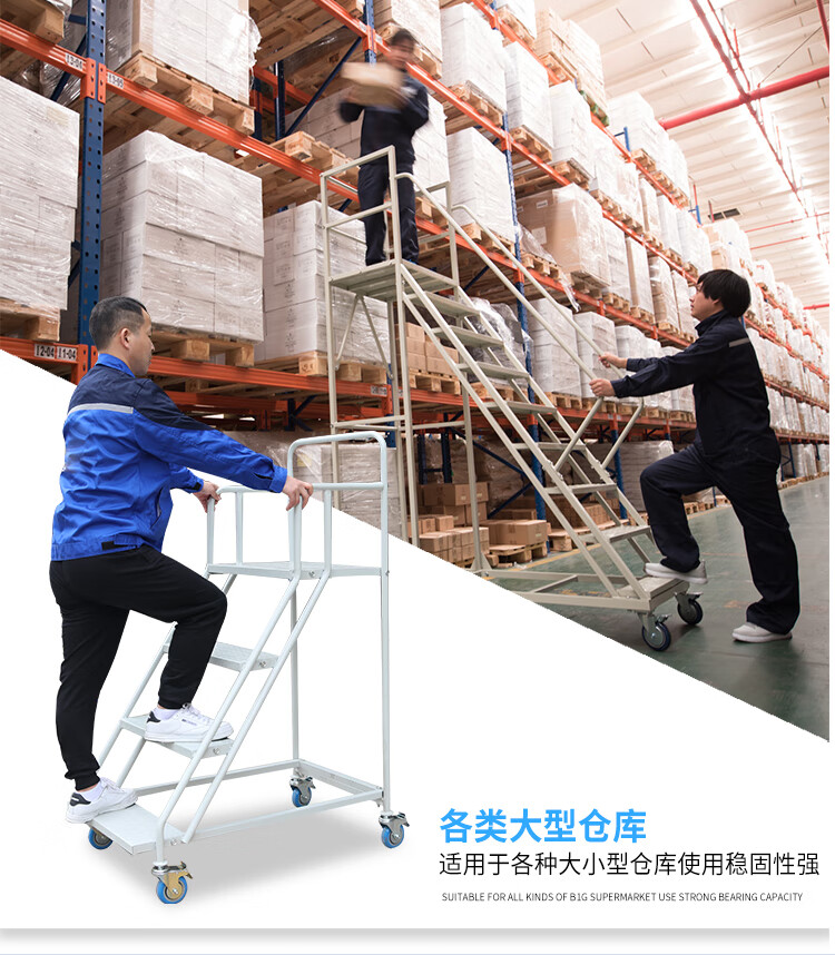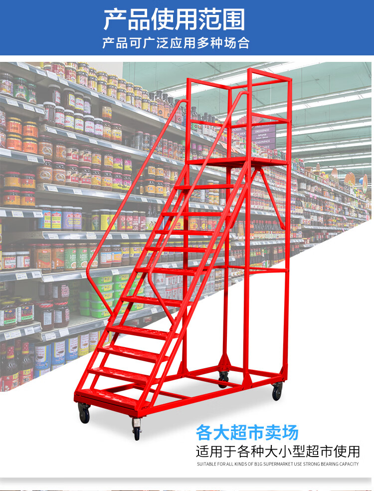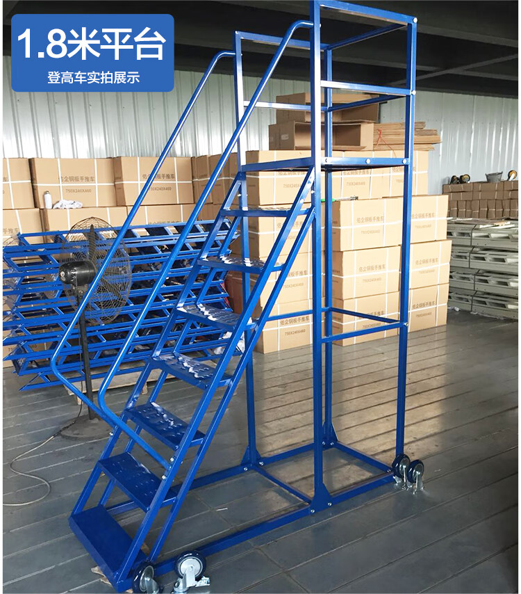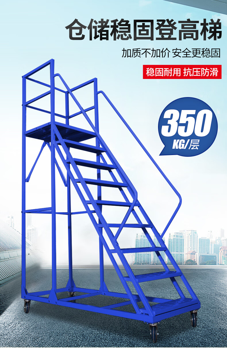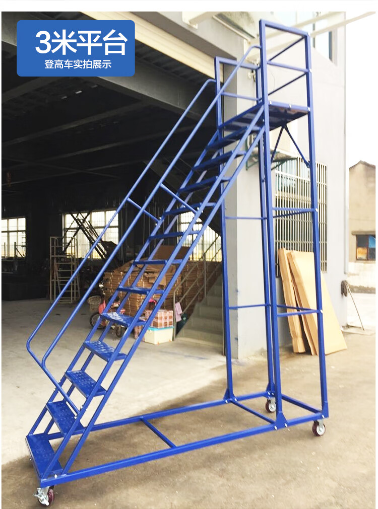 登高梯蓝色 仓库房取货物流平台工具梯 超市可移动理货车 防滑轮多功能可拆装配脚刹 平台离地3米