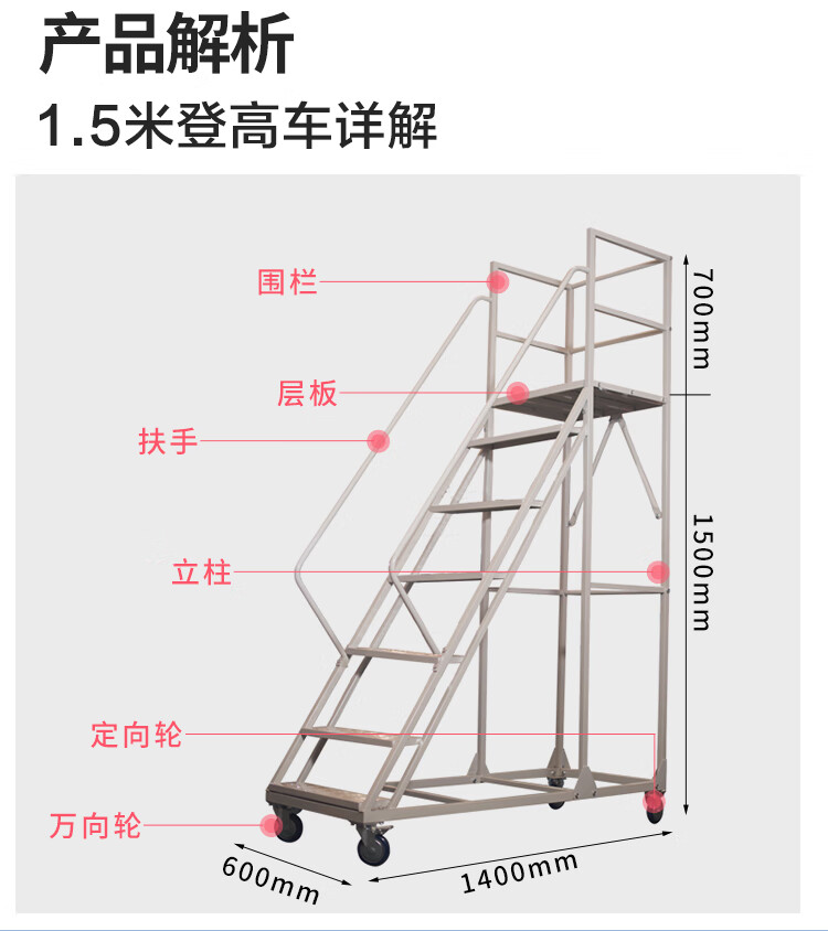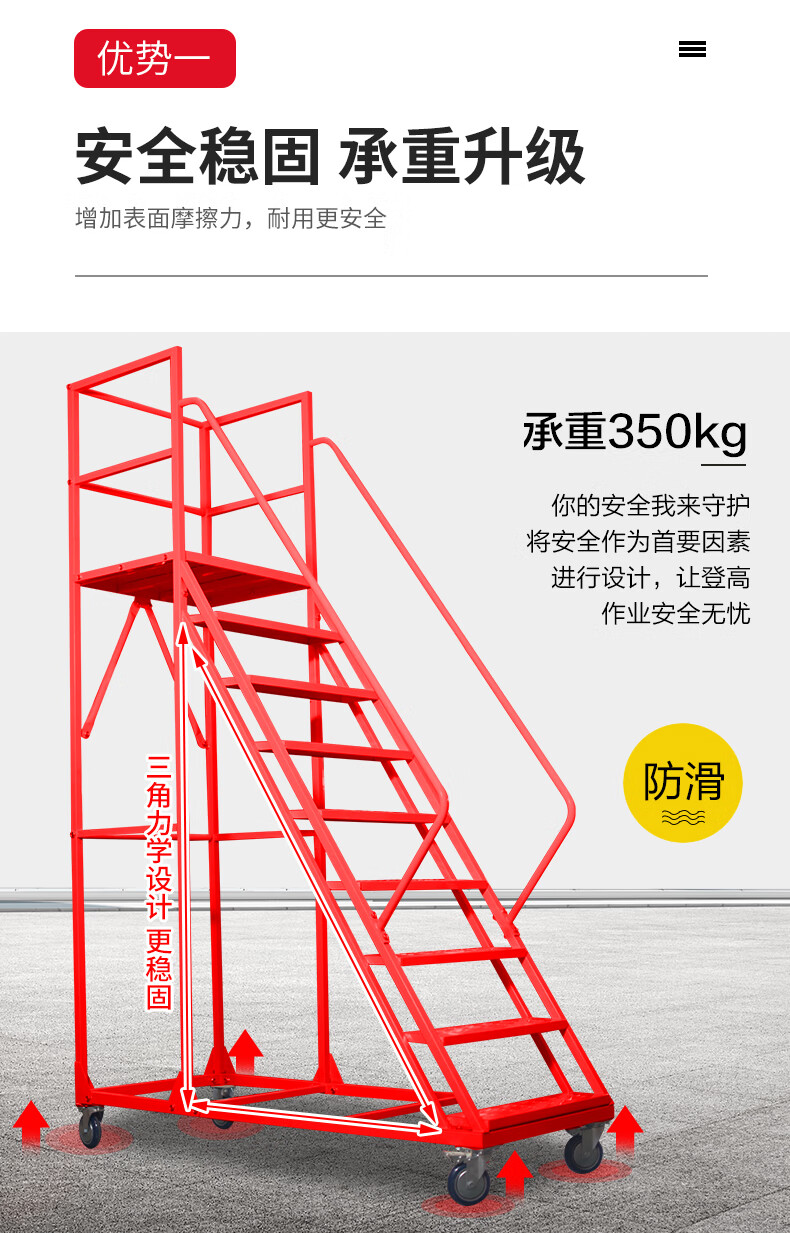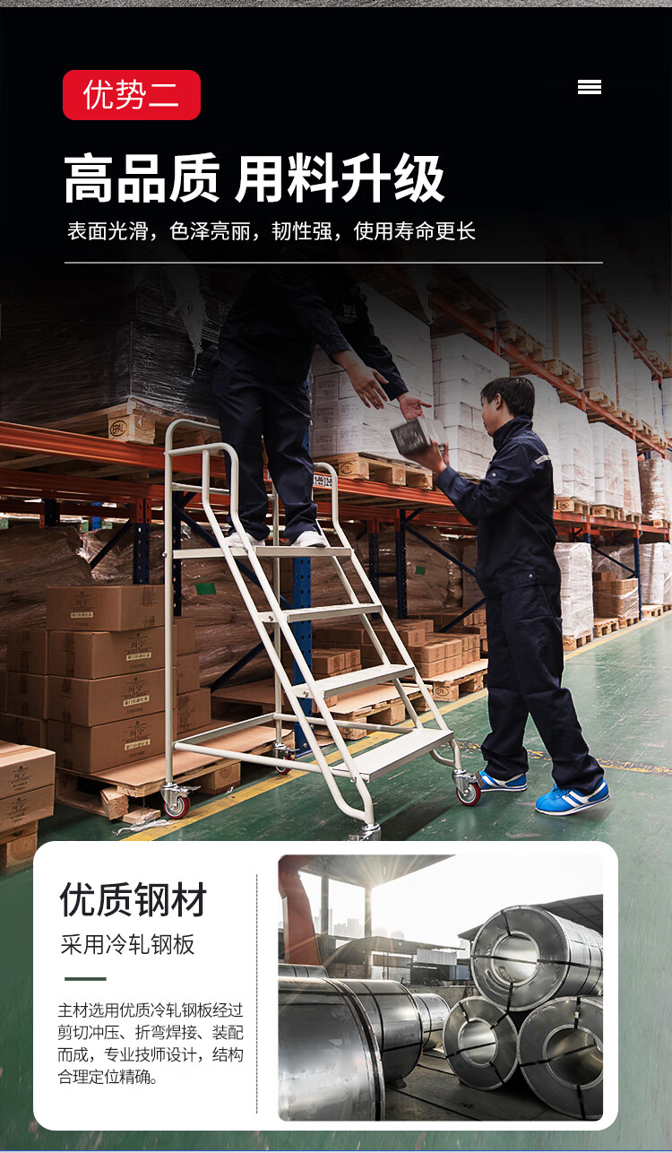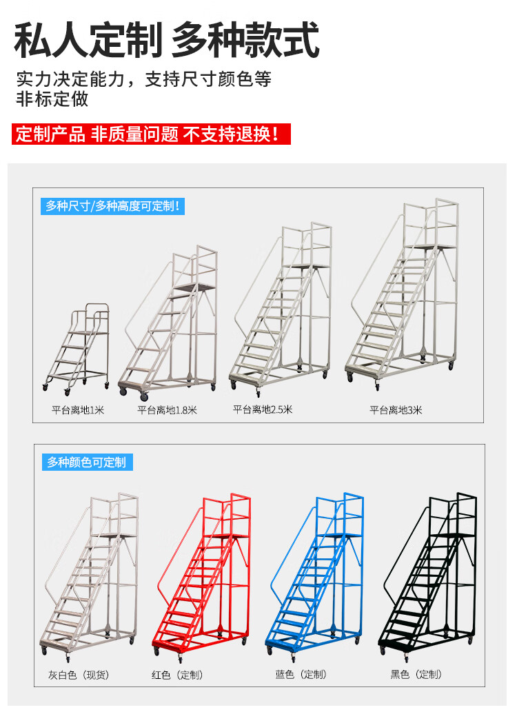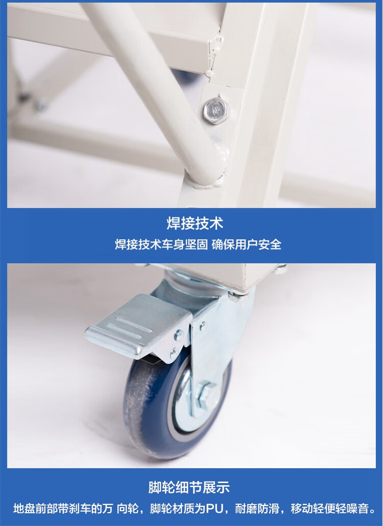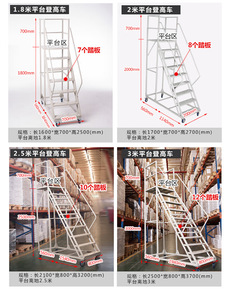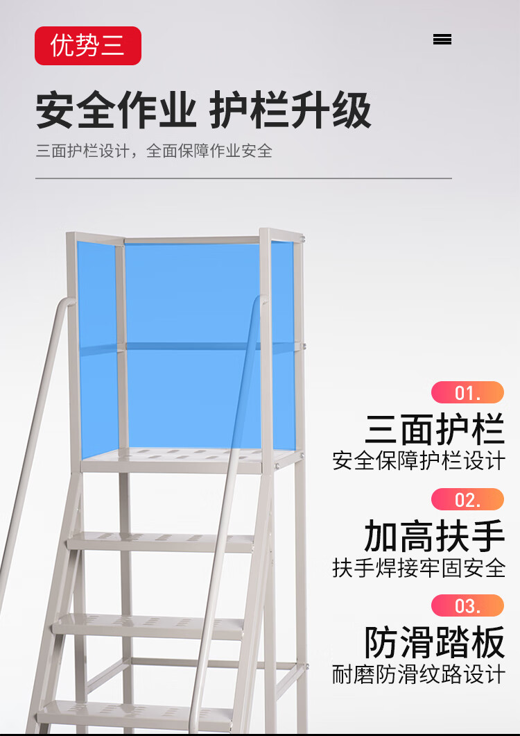 登高梯蓝色 仓库房取货物流平台工具梯 超市可移动理货车 防滑轮多功能可拆装配脚刹 平台离地3米