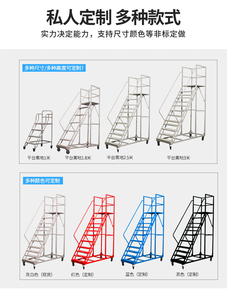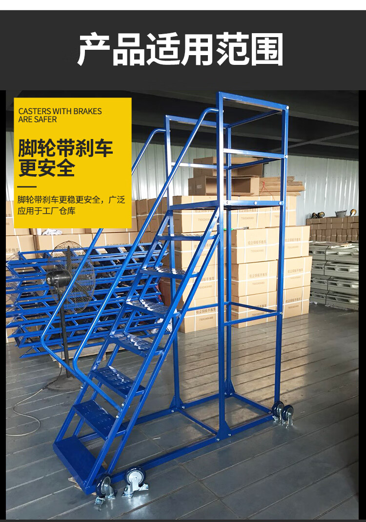 移动登高梯 带轮理货取货登高梯子 离地2米 1700*700*2000