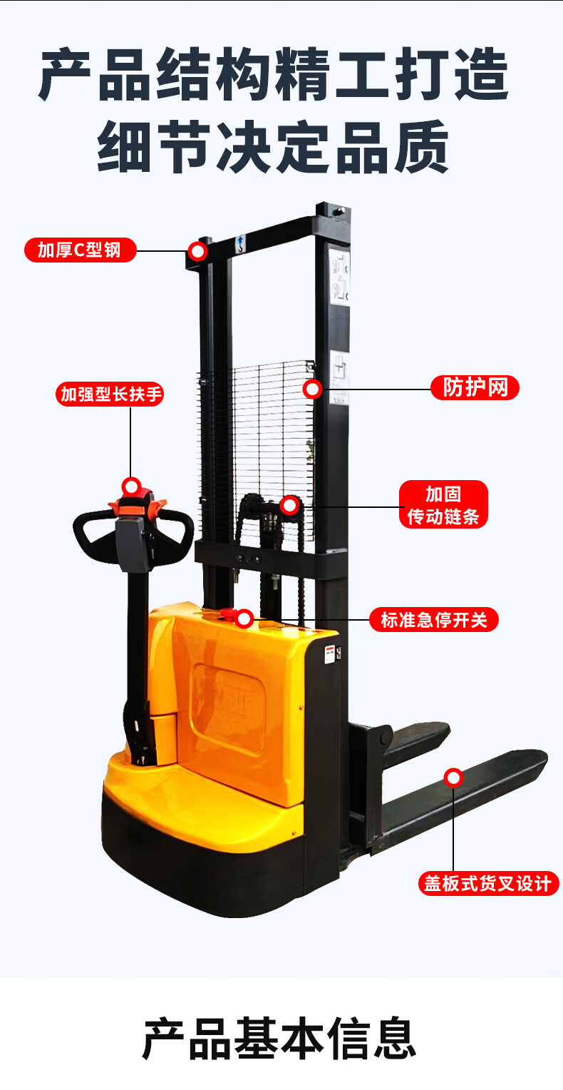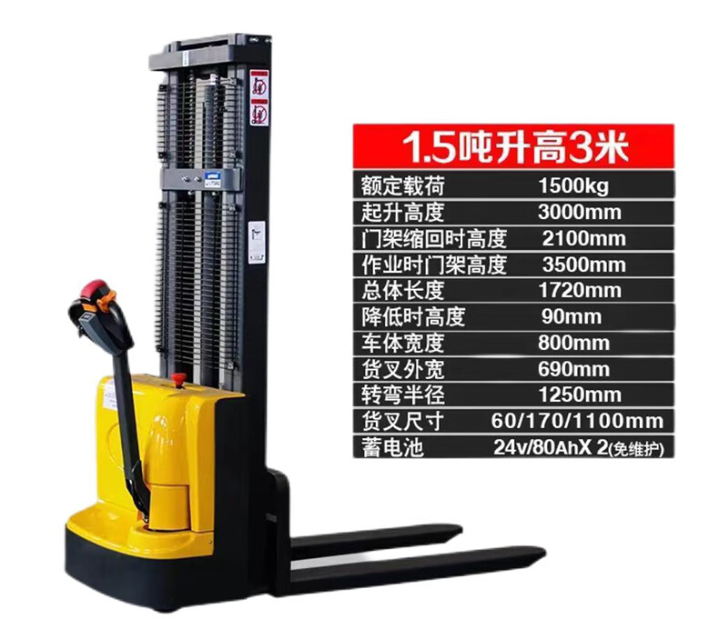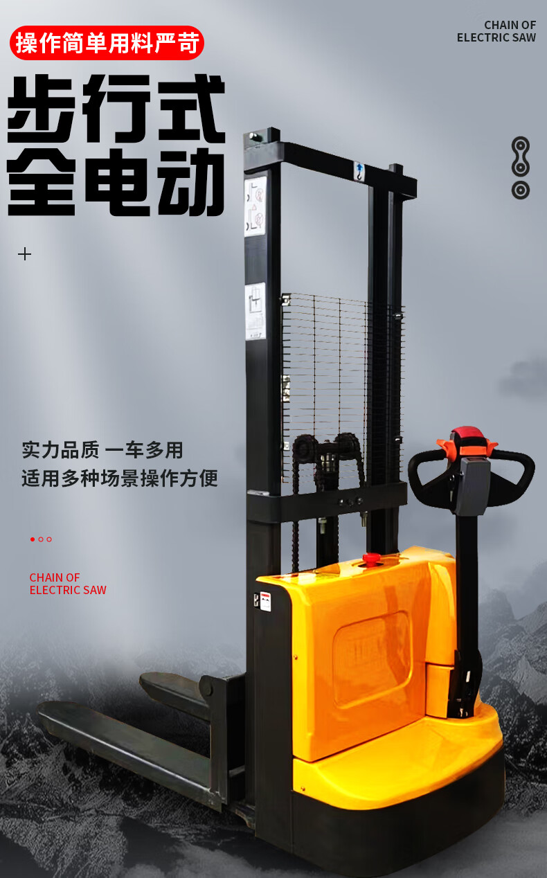 电动堆高车载重1吨升高3米铅酸电池24伏160安时HZBDG1030步行式托盘搬运叉车