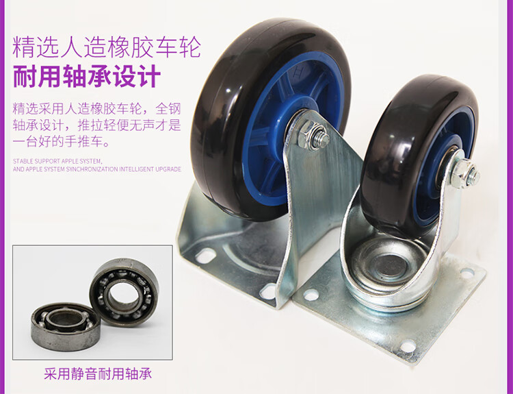 黑色平板手推车 搬运拉货拖车拉杆折叠小推车 90*60四角加固 5寸轻音轮 承重800斤