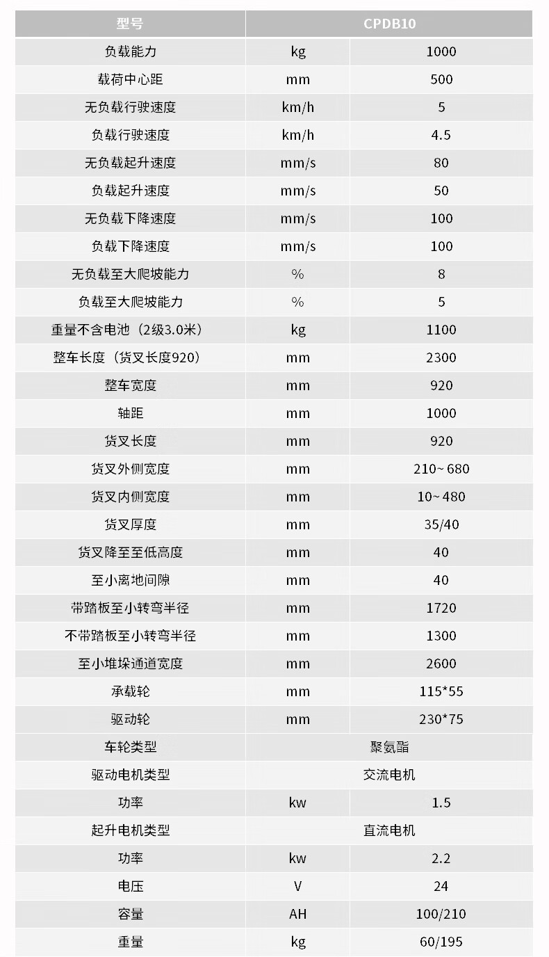 短轴距平衡重堆高车额定载重1000kg货叉最大起升高度3500mm